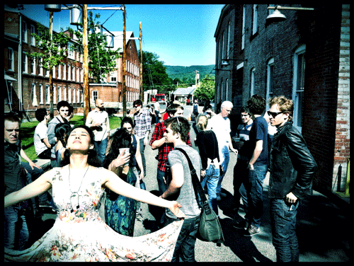I just got back from North Adams Massachusetts where we—with support from the Public Theater and Williamstown Theater Festival—mounted a full-length theatrical workshop production of Here Lies Love. This image was captured by one of the cast members, Evan D'Angeles, in a moment when our rehearsal was interrupted by the fire alarm